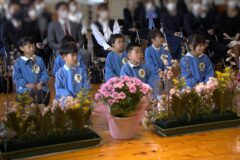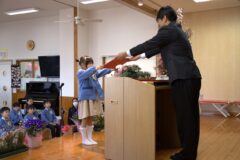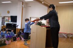 式が始まる前は緊張気味の子ども達でしたが園長先生から卒園証書をしっかり受け取り、『将来の夢・小学校で頑張りたいこと』を発表しました!